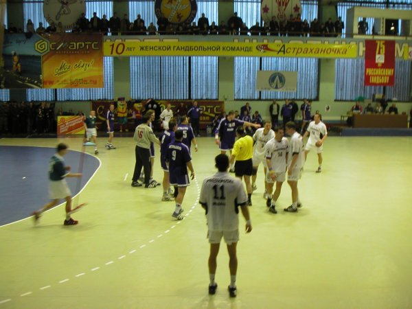 | 11:32 | -. | --:-- | Die Schiedsrichter sind die Mazedonier Kamisevski / Nikolovski. Die Spartak-Sporthalle in Astrachan fasst 1500 Zuschauer. Die Halle wird definitiv komplett gefüllt sein, denn Dynamo wird zunächst alle Karteninhaber einlassen, und dann zum Spielbeginn den in Schlangen draußen wartenden Fans freien Eintritt gewähren. Schon jetzt ist die Halle - mit einem harten Betonboden - sehr laut. Marcus Ahlm wird definitiv nicht spielen können, aber Noka Serdarusic wird trotzdem mit einer 6:0-Deckung beginnen. |