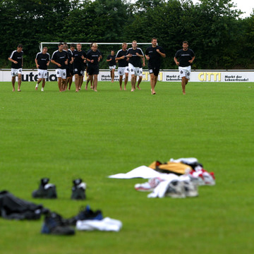 Den 6:1-Sieg der "alten" gegen die "jungen" Zebras erlebten nur drei THW-Spieler nicht auf dem Feld: Kapitän Stefan Lövgren, dessen Knöchel Sprints auf dem Rasen erspart werden sollten und Welthandballer Henning Fritz, der kürzlich im Schwimmbad umknickte, drehten unter dem Jubel der rund 100 Schaulustigen tapfer Runde um Runde auf der Tartanbahn.