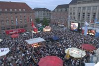 Am Sonnabend sind die Fans dran. "Anwurf" der Meistersause auf dem Rathausplatz ist ab 14 Uhr von der NDR-Partybühne. Der NDR ist Medienpartner des THW und präsentiert gemeinsam mit den Kieler Nachrichten die "NDR-Handballparty". Wie schon bei gleichen Anlässen in zurückliegenden Jahren fahren die norddeutschen Medienprofis "schweres Geschütz" auf. Neben der Partybühne unterhalb des Rathausbalkons wird eine 14 Quadratmeter große Videowall installiert. Dort können die Fans, die keinen Zutritt zur Ostseehalle haben, den THW-Saisonkehraus gegen den VfL Gummersbach ab 15 Uhr live und exklusiv miterleben. In der Ostseehalle sind fünf Kameras aufgebaut. Während Peter Carstens das Spiel kommentiert, moderiert Carsten Prehn die Meister-Show in der Ostseehalle, Ralf Huber ist "Chef" auf der NDR-Bühne, Sven Donat wird dem Publikum als DJ bis 24 Uhr einheizen, für Live-Musik ist die Top-40 Band Roxane zuständig. Das Signal aus der Ostseehalle erreicht die Videowall bis 17 Uhr, somit werden die Zuschauer der Außenveranstaltung auch Zeuge der Meisterehrung.