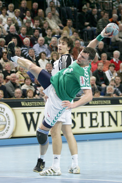 Beim Stand von 7:6 (15.) erinnerte sich Serdarusic an den famosen Auftritt von Dominik Klein am Mittwoch in Melsungen und beorderte seinen Linksaußen abermals an die Spitze einer 5:1-Abwehrformation. Mit nachhaltigem Erfolg. Die Gegenstöße, die Klein dem THW durch seine ständigen Störmanöver ermöglichte, und seine eindrucksvolle Trefferquote ließen den Vorsprung auf ein komfortables 16:9 (25.) wachsen. Mittwoch zwölf Tore, gestern neun - der THW-"Youngster" sprüht derzeit förmlich vor Spielfreude. Außerdem fanden Nikola Karabatic' Anspiele immer öfter die Hände von Marcus Ahlm (6), dem die Mindener als Dank zwei Trikots innerhalb von fünf Minuten zerrissen.