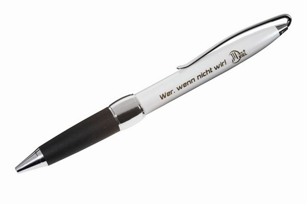ist ein eleganter Kugelschreiber: Dank des schwarzen, gummierten Griffs