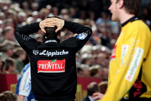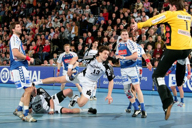 Es war der Schlusspunkt hinter einer Partie, in die der Deutsche Rekordmeister nur sehr schwer hineinfand. Die zurückliegenden Wochen mit glanzvollen Spielen in der Champions League und dem kräftezehrenden Auftritt beim HSV hatten deutliche Spuren hinterlassen. Blei in den Beinen, Leere im Kopf. Zweimal Sebastian Preiß, einmal Logi Geirsson - Lemgo nutzte die Gunst der Stunde, legte einen Blitzstart hin und führte schnell mit 3:0 Toren. Und die Reaktion der "Zebras"? Zunächst keine. Müde umkreisten sie Lemgos variable Abwehr, das Tor des bis dahin guten Carsten Lichtlein schien wie vernagelt. Glück für Kiel, dass die Gäste selbst beste Konterchancen ungenutzt ließen, ein 0:6 wäre möglich gewesen. So dauerte es bis zur 9. Minute, bevor Nikola Karabatic den Bann brach. Wie ein Bulldozer stieß er in den blauweißen Abwehrverbund, traf mit Einzelaktionen zum 1:3 und 2:4 und rüttelte das eigene Team wach.