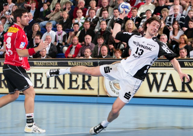 Kiel gegen Essen, diese Spiele waren einst Klassiker. Unvergessen der 25:15 (10:3)-Sieg des TuSEM im November 1990 in der Ostseehalle. Es war das letzte Spiel, das der Rekordmeister im DHB-Pokal zu Hause verlor. Linksaußen Uwe Schwenker, heute THW-Manager, verwarf damals beim Stand von 2:7 einen Siebenmeter. Und Raubein Kristof Schargy, inzwischen TuSEM-Trainer, kassierte alle drei Zeitstrafen für die Westdeutschen. Alte Geschichten, die der aktuelle Kader der Gäste nur in den ersten 13 Minuten bestätigen konnte. 8:6 führte der Tabellen-16., der in seinen beiden Holländern die auffälligsten Figuren besaß. Torhüter Gerrie Eijlers avancierte zum besten TuSEM-Spieler, Rechtsaußen Mark Schmetz zum unbeliebtesten. Offensichtlich übermotiviert biss sich der 31-Jährige erst in Zweikämpfen mit Henrik Lundström fest. Als THW-Trainer Noka Serdarusic das Duell abkühlte und Lundström durch Dominik Klein ersetzte, wählte sich der 113-fache Nationalspieler Nikola Karabatic als Reibungsfläche und sah nach zwei klaren Fouls an ihm in der 51. Minute sogar die Rote Karte.