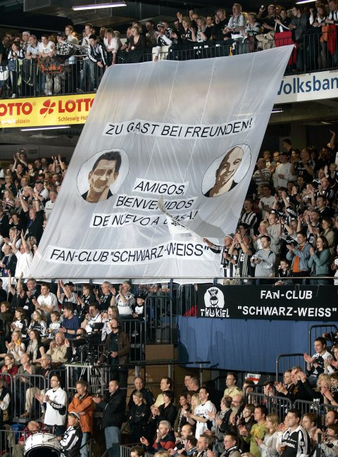 Außerdem bietet "Schwarz-Weiß" zugunsten der "Initiative der Stadt Kiel für hilfsbedürftige Kinder" auch noch zwei Trommelfelle der THW-Trommler an. Diese werden durch die zahlreichen Original-Autogramm von vielen Stars zu absoluten Unikaten. Auf dem einen Trommelfell befinden sich die Unterschriften der Handballrentner von Deutschland und Schweden, die sich am 19.10.2004 in der Kieler Ostseehalle zum Abschiedsspiel gegenüber standen. Dazu zählten so verdiente Spieler wie, "Pitti" Petersen, "Max" Wislander, Staffan Olsson, Stefan Kretzschmar, Volker Zerbe und Mark Dragunski, die allesamt ihre internationalen Karrieren beendeten. Es war eine Handballparty voller Wehmut, bei der auch im weiten Rund der Halle viele Tränen flossen. Auf dem anderen Fell befinden sich noch zahlreiche Unterschriften verdienter Spieler, die der "Shcwarz-Weiß"-Trommler Kraatzer im Laufe der Jahre gesammelt hat. Die Trommelfelle (Größe 22' Zoll) sind völlig in Ordnung, haben aber deutliche Gebrauchsspuren. Also eignen sie sich nicht nur für die Wand, sondern können ohne weiteres auch für den Support genutzt werden.