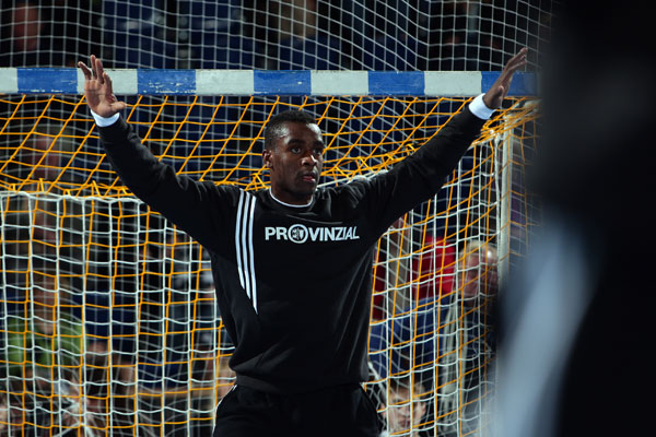 Keeper nach zehn Minuten bei der Parade eines Wurfs