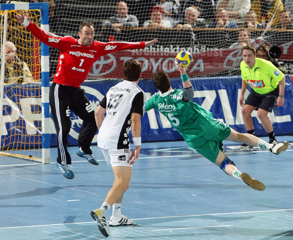 Gleichwohl fiel der Start holprig aus. Die Deckung stand bei Mindens Gegentoren Spalier, im Angriff wurden leichtfertig Großchancen ausgelassen, Missverständnisse gab's, begleitet von Hadern und Zetern. Als Mindens Nationalspieler Michael Hegemann in der 15. Minute zum 11:11 traf, platzte Gislason der Kragen, er bat seine Spielerschar zur Auszeit. Es müssen deutliche Worte gefallen sein, denn fortan standen zwar die selben Akteure auf dem Parkett, aber eine andere Mannschaft. Thierry Omeyer fand im Tor zur Form zurück, die Abwehr wurde zur Wand und vorne trafen die Kieler, wie sie wollten. Allen voran Stefan Lövgren, der bis zum Seitenwechsel sieben Bälle bei Medhus und Besirevic unterbrachte, Kim Andersson und Henrik Lundström waren bis dato fünfmal am Torreigen beteiligt. Der 26:17-Halbzeitstand verhieß Böses für den Gast, Kiels 54:34-Rekordsieg über Magdeburg machte die Runde.
