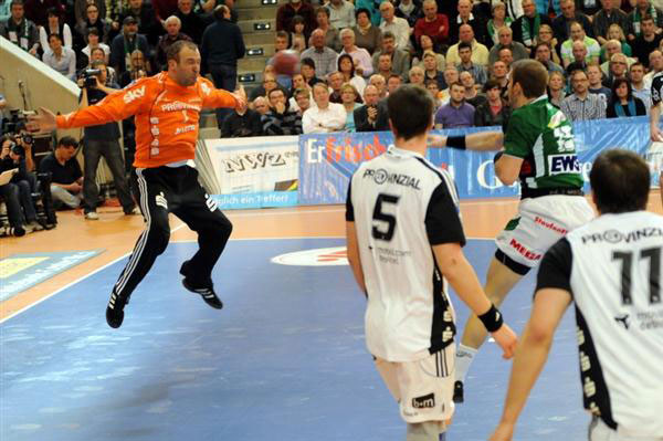 Göppingen ist die Handball-Hochburg im Schwäbischen, die Stadt lebt diesen Sport und hängt an Frisch Auf. So war das Spiel des Tabellendritten gegen den Rekordmeister seit Wochen ausverkauft, viele der 5600 Fans drängelten bereits zwei Stunden vor dem Anpfiff an den Eingangspforten der EWS-Arena. Drinnen war die Spannung greifbar und übertrug sich anfangs auf beide Teams. Die Angriffsreihen produzierten Fehler, die Defensiven hatten das Spiel im Griff. Von Nervosität befreit waren zunächst nur die Torhüter. Kiels Welthandballer Thierry Omeyer wurde seiner Auszeichnung sofort gerecht, hielt fünf Bälle in Folge an und legte den Grundstein zur Kieler 5:2-Führung nach zwölf Minuten. Auf der anderen Seite stand mit Enid Tahirovic ebenfalls ein Meister seines Fachs zwischen den Pfosten, nahm Dominik Klein einen Tempogegenstoß weg, hielt einen Strafwurf von Ilic und mit Paraden in Serie die Kieler Führung in Grenzen.