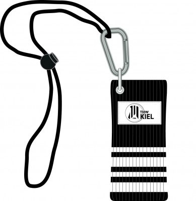 Das THW-Handysäckchen kommt im schicken Ringellook daher.