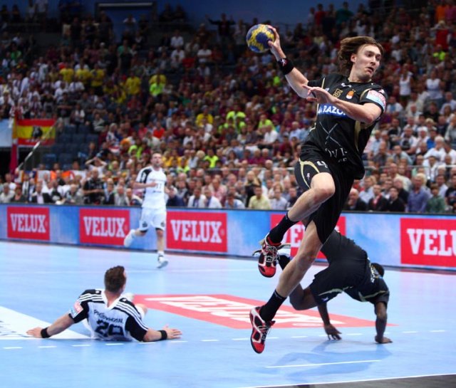 die Spanier von den erzwungenen Fehlern im Kieler Angriff: Aguinagalde und Rodriguez erzielten
