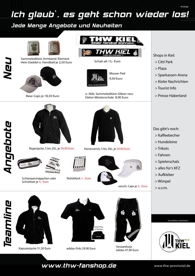 Neu ist auch die THW-Teamline: Hier sind jetzt eine Kapuzenjacke, das THW-Polo-Shirt und die original Torwarthose zu beziehen.