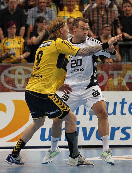 Die Kieler jedoch starteten nun mit Wut im Bauch in ihre bis dahin stärkste Phase. Mit einem phänomenalen Stemmwurf aus dem Rückraum traf Dominik Klein zum 10:13, ehe Groetzki einen Heber aus eigentlich gutem Winkel neben das Tor setzte. Der erneut starke Andersson tankte sich im Anschluss durch die Löwen-Deckung zum 11:13, Jicha beantwortete einen Gunnarsson-Treffer postwendend zum 12:14. Der THW Kiel war nun am Drücker, was auch Löwen-Trainer Gudmundsson bemerkte und Lund und Bielecki für Schmid und Sesum aufs Spielfeld beorderte. Alfred Gislason aber reagierte postwendend auf die wurfstarken Einwechslungen und beorderte seine mittlerweile defensiver stehende Deckung wieder zur offensiveren 3:2:1-Formation. Dies hatte zur Folge, dass Bielecki gar nicht in Wurfposition kam und Börge Lund und Michael Müller viel Verantwortung übernehmen mussten. Zweimal versuchte es Müller, dreimal Lund, doch jedes Mal scheiterten sie am immer stärker werdenden Thierry Omeyer. Auf der anderen Seite hingegen konnte Goran Stojanovic nach seiner starken Anfangsphase gar keinen Ball mehr stoppen, so dass die Kieler durch Jicha und Sprenger zum 14:14-Ausgleich kamen. Auch Gudmundssons Auszeit konnte den THW-Express nicht stoppen, Jicha gelang in der 25. Spielminute die erste Führung, die Palmarsson mit einer tollen Einzelaktion und Narcisse per Durchbruch gar auf 17:14 erhöhten. Nach einem weiteren klasse Treffer Palmarssons aus dem Stand zum 18:15 und einem Wahnsinnsgeschoss Gensheimers aus dem Rückraum zum Pausenstand wurden beide Mannschaften mit viel Applaus in die Kabinen begleitet.
