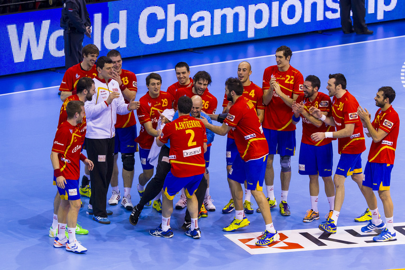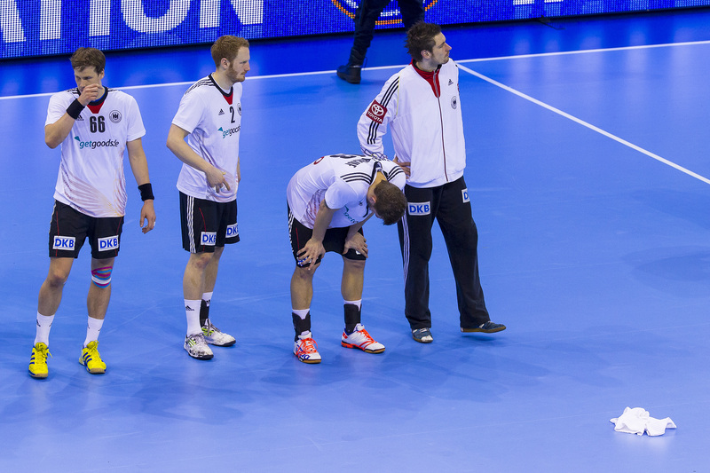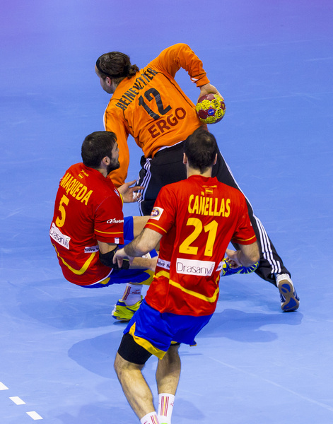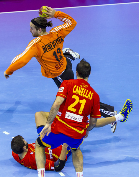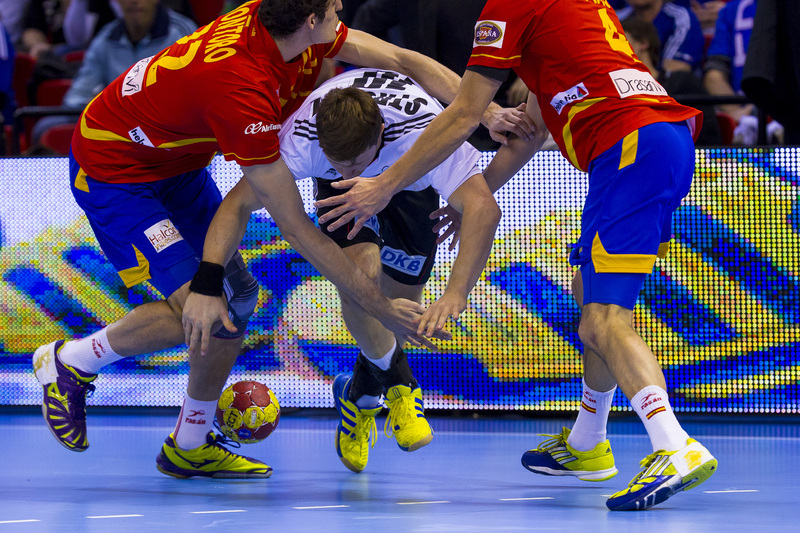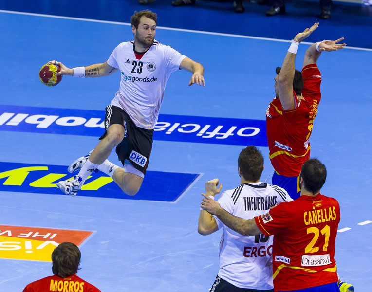 Die Spanier hatten nichts unversucht gelassen, um die Deutschen aus dem Tritt zu bringen. Während sie sich aufwärmten, lief auf dem Videowürfel über ihnen noch einmal der Kantersieg der Gastgeber im Achtelfinale gegen Serbien ab. Doch die Schützlinge von Martin Heuberger zeigten sich unbeeindruckt, auch nach dem Anpfiff. Mit Herz und auf schnellen Beinen traten sie an, in Silvio Heinevetter hatten sie einen guten Rückhalt. Dagegen fand der bullige Arpad Sterbik nicht ins Spiel. Als Michael Haaß durch seine stämmigen Beine hindurch das 7:5 für die Deutschen erzielte, nahm Valero Rivera den Hünen vom Feld. Wie sich am Ende herausstellen sollte, hatte er mit dem relativ unbekannten Jose Sierra den Matchwinner e ingewechselt.