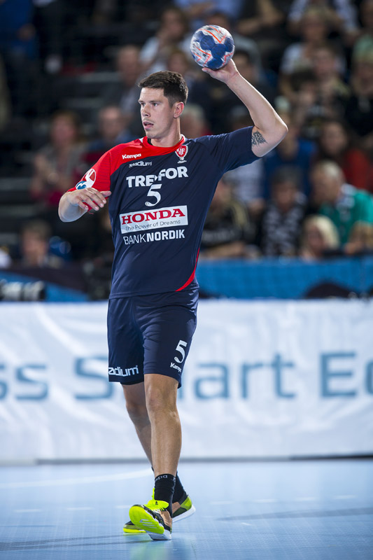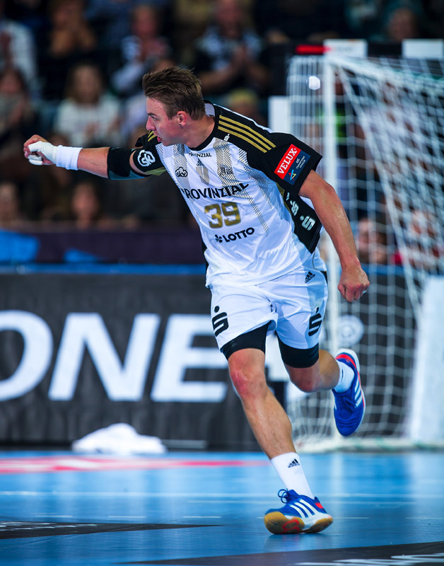 Karlsson mit einem abgeknickten Schlagwurf auf 12:10 für Kolding