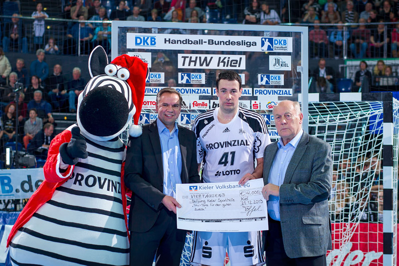 Für jedes THW-Tor spendierte die Kieler Volksbank 100 Euro, rundete