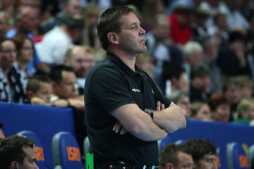 | Alfred Gislason. | Magdeburgs Trainer Alfred Gislason dreht sich ab, während seine Spieler Oliver Roggisch, Sigfus Sigurdsson und Karol Bielecki ungläubig auf das Spielfeld schauen. | SCM-Trainer Alfred Gislason verlässt die Ostseehalle. | Alfred Gislason entspannt. | |||