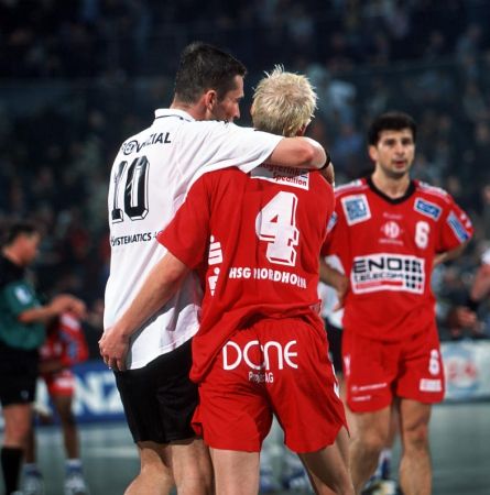 | EHF-Pokal-Finale 2002, Rückspiel: Empfang am Vereinsheim. | EHF-Pokal-Finale 2002, Rückspiel: Empfang am Vereinsheim. | Kapitän Stefan Lövgren nahm in der entscheidenden Phase das Heft in die Hand. | Kapitän Stefan Lövgren nahm in der entscheidenden Phase das Heft in die Hand. | |||