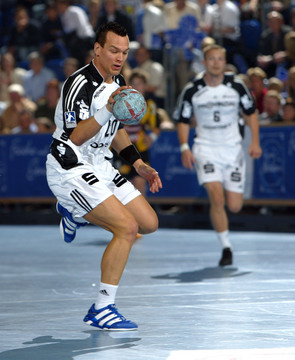 | Pettersson, Zeitz, Hagen.^ | Christian Zeitz war gegen Minden bester Schütze. | Frode Hagen in seinem ersten Spiel in der Ostseehalle für den THW. | Autogrammkarte 2004/2005: Christian Zeitz. | |||