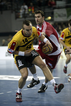 | Christian Zeitz. | Christian Zeitz wird beim Tempogegenstoß von Michal Zolotenko attackiert. | Christian Zeitz versucht, die Plocker Mauer zu durchbrechen. | Christian Zeitz. | |||