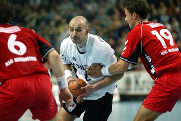 | Senianin Maglajlija setzt sich gegen Dominikovic und Bjerre durch. | Die THW-Deckung packt zu. | Davor Dominikovic. | Davor Dominikovic. | |||
