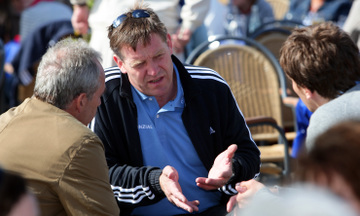 | Golfen 2008: THW-Trainer Alfred Gislason im Gespräch mit Mannschaftsarzt Dr. Detlev Brandecker und Marcus Ahlm. | Golfen 2008: THW-Trainer Alfred Gislason im Gespräch mit Mannschaftsarzt Dr. Detlev Brandecker und Marcus Ahlm. | Meister! | Auch Dr. Brandecker wurde nicht verschont. | |||