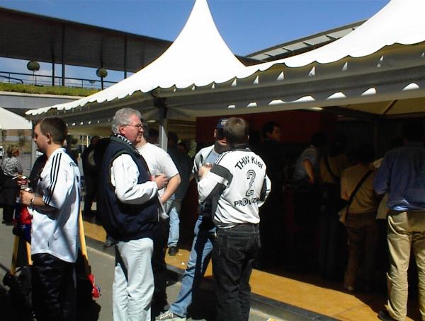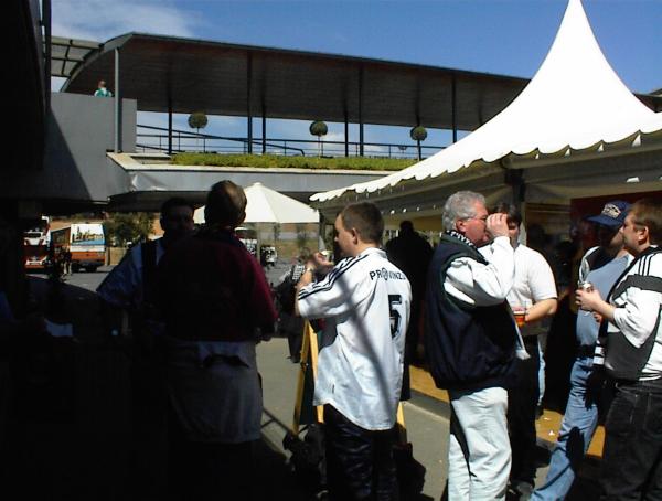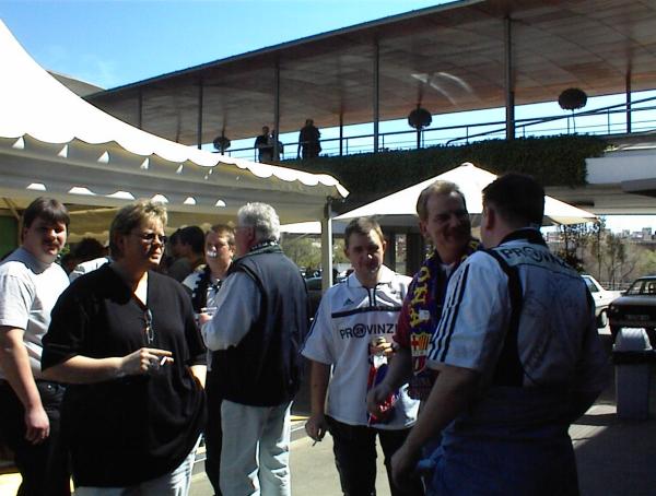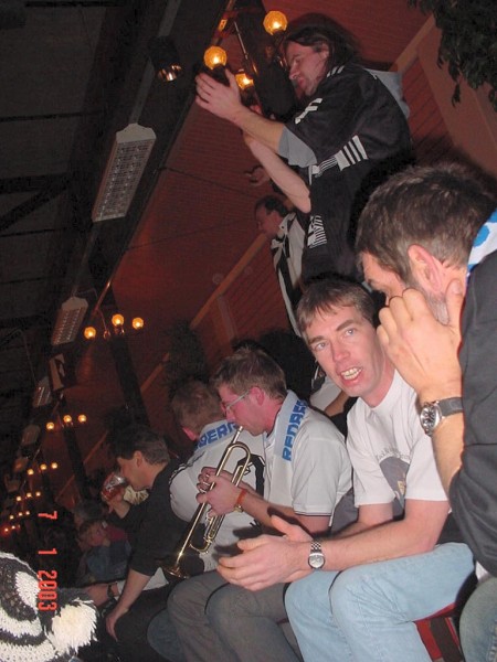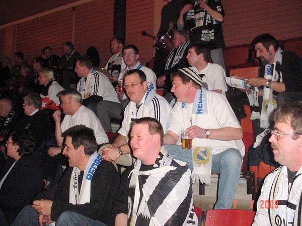 | Göteborg-Tour 2003: Kurz vor der Partie. | Göteborg-Tour 2003: Max - nun in weiß-blau mit der Nummer 22! | Göteborg-Tour 2003: Stimmung durch die Zebra-Fans. | Göteborg-Tour 2003: Stimmung durch die Zebra-Fans. | |||