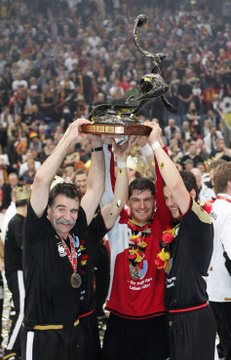 | Pokalsieger! | Pokalsieger! | Ehrung für die Weltmeister. | Henning Fritz musste verletzt zusehen. | |||