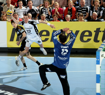 | Aufregung. | Spielszene. | Oliver Roggisch und Henning Fritz. | Dominik Klein gegen Henning Fritz. | |||