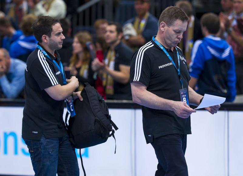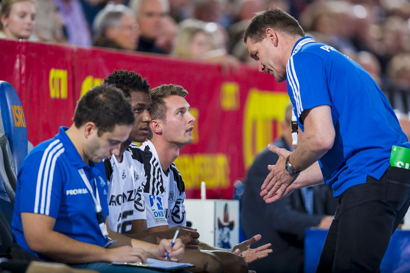 | Alfred Gislason im Interview. | Fotoshooting für das VELUX EHF Champions League Final4. | Auszeit. | Diskussionen. | |||
