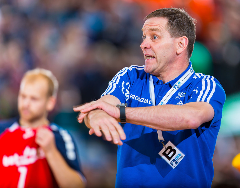 | Alfred Gislason. | Celjes Sportdirektor Roman Pungartnik und THW-Trainer Alfred Gislason. | Alfred Gislason. | Alfred Gislason. | |||