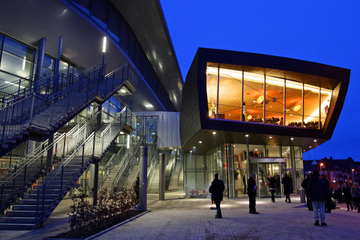 | Gleich geht's los. | Die neue Videowall in der Halle. | Die "neue" Ostseehalle. | Die Vorderfront. | |||