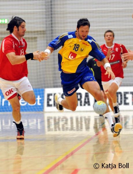 | Testspiel Dänemark - Schweden: Tobias Karlsson. | Testspiel Dänemark - Schweden: Fredrik Larsson (Mitte), Tobias Karlsson (rechts). | Kim Andersson verletzte sich schwer. | Kim Andersson verletzte sich schwer. | |||
