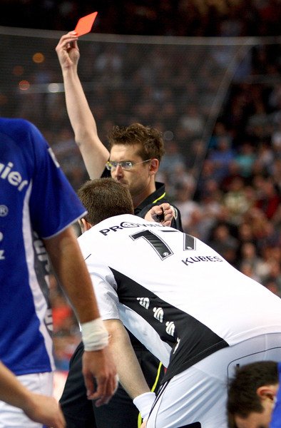 | Rot für Daniel Kubes. | Christian Zeitz und Daniel Kubes. | Auszeit. | Besprechung. | |||