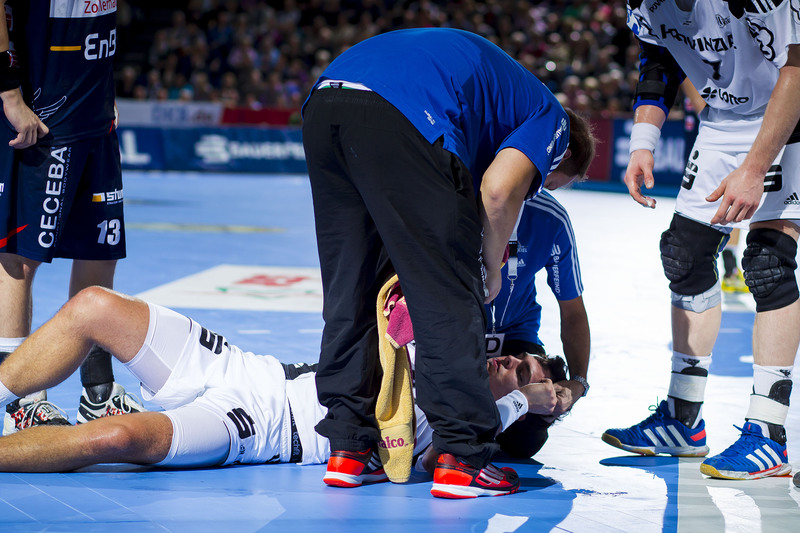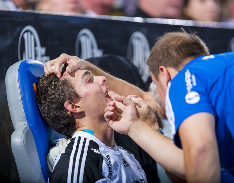 | Rasmus Lauge verletzt. | Rasmus Lauge. | Spielszene. | Rasmus Lauge. | |||