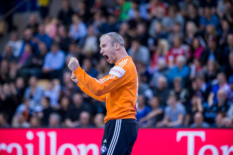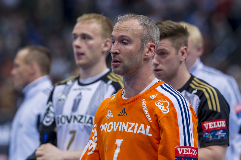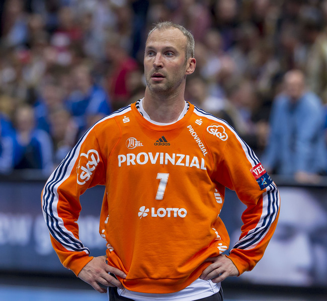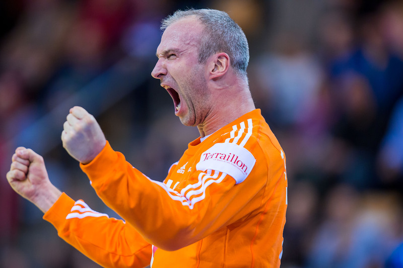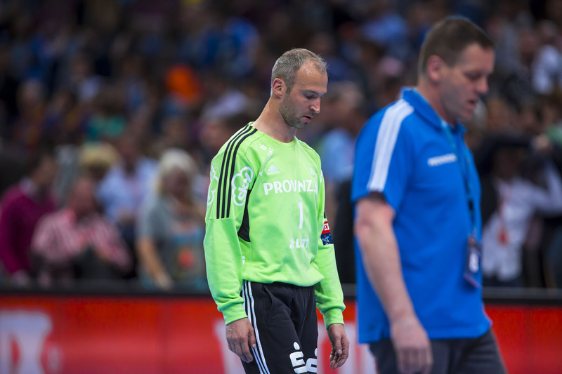 | Thierry Omeyer. | Enttäuschung. | Fotoshooting für das VELUX EHF Champions League Final4. | Filip Jicha. | |||