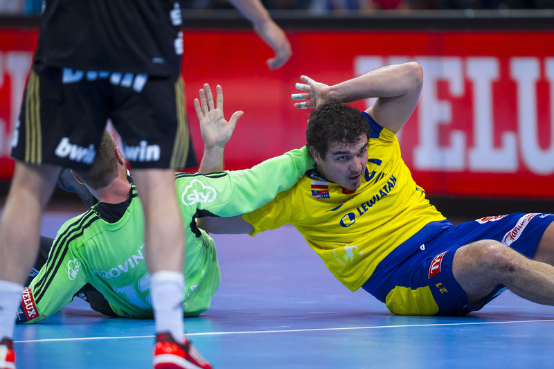 | Thierry Omeyer gegen Hans Lindberg. | Spielszene. | Vor dem Spiel. | Thierry Omeyer. | |||