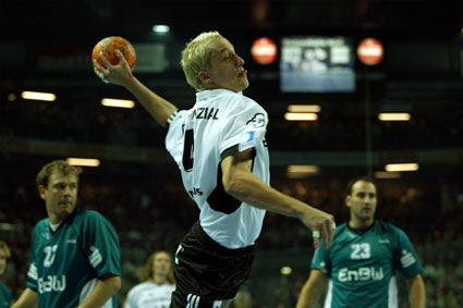| Johan Pettersson. | Porträt 2003/2004 Johan Pettersson. | Handball-Bundesliga-Cup 2003. | Handball-Bundesliga-Cup 2003: Demetrio Lozano - im Hintergrund Pungartnik und Preiß. | |||