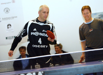 | Schwedisches Doppel: Tischtennis-Star Jan-Ove Waldner (rechts) und Handball-Star Johan Pettersson (links, Profi des THW Kiel). | Schwedisches Doppel: Tischtennis-Star Jan-Ove Waldner (rechts) und Handball-Star Johan Pettersson (links, Profi des THW Kiel). | Jörg Rosskopf (rechts oben) und Dr. Dirk Luckow (rechts unten, Direktor der Kunsthalle) trafen in der Kunsthalle Kiel auf Jan-Ove Waldner (SWE, links unten) und Johan Petersson (links oben). | Jörg Rosskopf und Dr. Dirk Luckow trafen in der Kunsthalle Kiel auf Jan-Ove Waldner und Johan Petersson. | |||