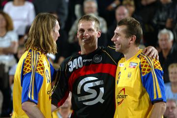 | Magnus Wislander eröffnet den Partille-Cup 2001. | Magnus Wislander. | Masip paßt, rechts Wislander. | Ortega wirft, rechts Olsson und Wislander. | |||