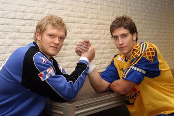 | Adrian Wagner, links Marcus Ahlm. | Marcus Ahlm. | Marcus Ahlm, rechts Blazenko Lackovic. | Lackovic, Kavticnik und Ahlm. | |||