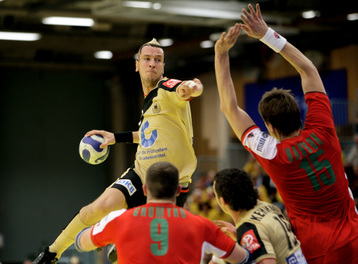 | EC 2008: HUN-GER: Torsten Jansen. | EC 2008: HUN-GER: Pascal Hens is attacked. | EC 2008: HUN-GER: Holger Glandorf. | EC 2008: HUN-GER: Christian Zeitz. | |||