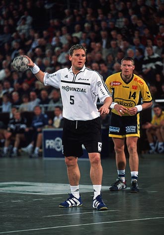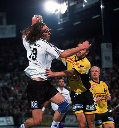 | Die Schweden im Schwartauer Getümmel. | Stefan Lövgren - schwer zu stoppen. | Niko überrascht Bad Schwartau aus dem Rückraum. | Nikolaj Jacobsen - ein eiskalter SIebenmeterschütze. | |||
