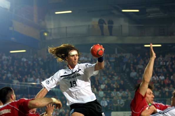| Staffan Olsson - mit dickem Pflaster. | Teamwork: Petersen blockt, Olsson trifft. | Staffan Olsson. | Zeigte gegen seinen ehemaligen Verein eine tolle Partie: Nenad Perunicic. | |||