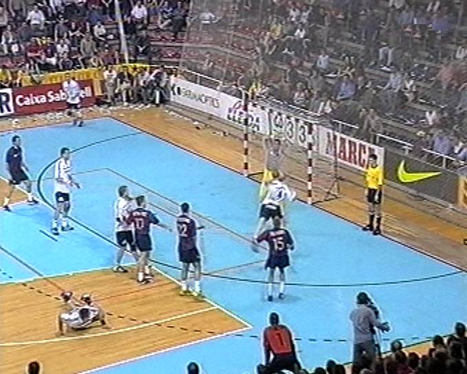 | EHF-Pokal-Finale 2002, Rückspiel: Halbzeit: 14:8 für Barcelona. | EHF-Pokal-Finale 2002, Rückspiel: Pettersson markiert das 8:14. | EHF-Pokal-Finale 2002, Rückspiel: Guijosa trifft zum 17:9. | EHF-Pokal-Finale 2002, Rückspiel: Lozano trifft zum 13:19. | |||