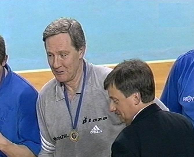 | EHF-Pokal-Finale 2002, Rückspiel: Klaus-Dieter Petersen. | EHF-Pokal-Finale 2002, Rückspiel: Noka Serdarusic mit EHF-Generalsekretär Wiedener. | EHF-Pokal-Finale 2002, Rückspiel: Die THW-Fans. | EHF-Pokal-Finale 2002, Rückspiel: Da ist der Pott! | |||