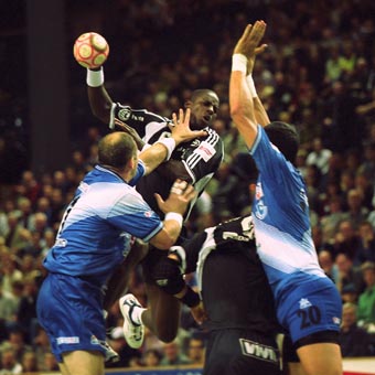| Endlich wieder dabei - Nikolaj Jacobsen. | Lozano und Fis stoppen Richardson. | Fis gegen das spanische Abwehrbollwerk. | ||||