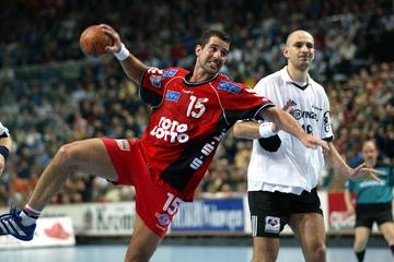 | Uwe Schwenker hatte wenig Grund für Ärger. | Lövgren stoppt Schumann. | Holger Glandorf. | Ian Marko Fog - Dominikovic im Hintergrund. | |||