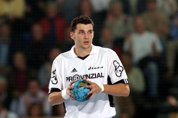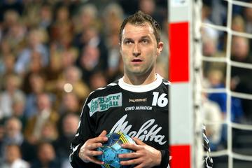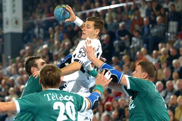 | Henning Fritz. | Demetrio Lozano gegen Jan-Fiete Buschmann. | Marcus Ahlm setzt sich durch. | Marcus Ahlm setzt sich durch, im Hintergrund Bezdicek und Ziercke. | |||