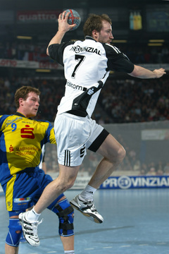 | Marcus Ahlm setzt sich durch. | Adrian Wagner, links Marcus Ahlm. | Vid Kavticnik. | Stefan Lövgren. | |||