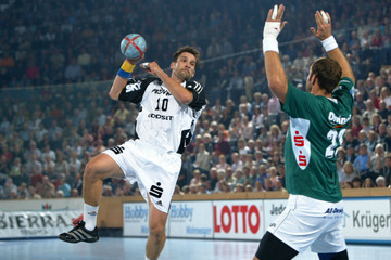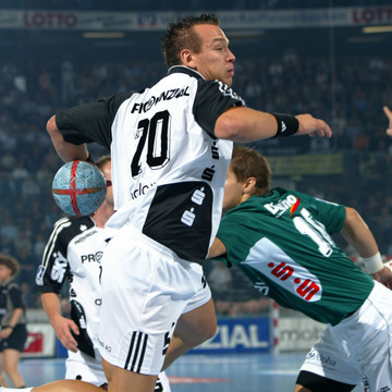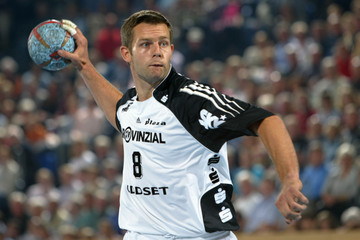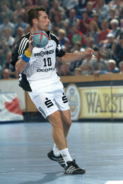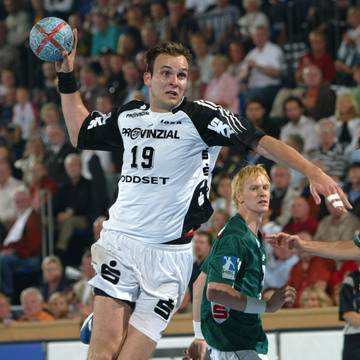 | Stefan Lövgren beim Siebenmeterwurf. | Stefan Lövgren beim Siebenmeterwurf. | Kim Andersson. | Vid Kavticnik beim Wurf von Außen. Im Hintergrund sieht Göppingens Nikola Manojlovic zu. | |||