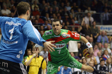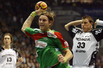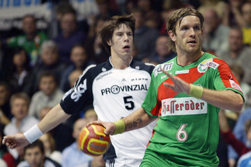 | Abati, links Lundström. | Gregor Tkazcyk, rechts Dominik Klein. | Yves Grafenhorst, im Hintergrund Nikola Karabatic. | Schwenker und Serdarusic. | |||